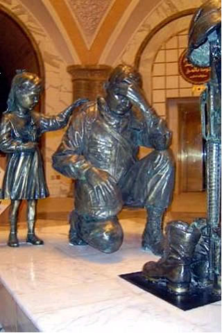 New 4th Infantry Division Memorial, Sculpted by an Iraqi ArtistA lot of mis-information has been going �round on the web about this statue.For a full discussion, see http://www.snopes.com/photos/military/kalat.asp